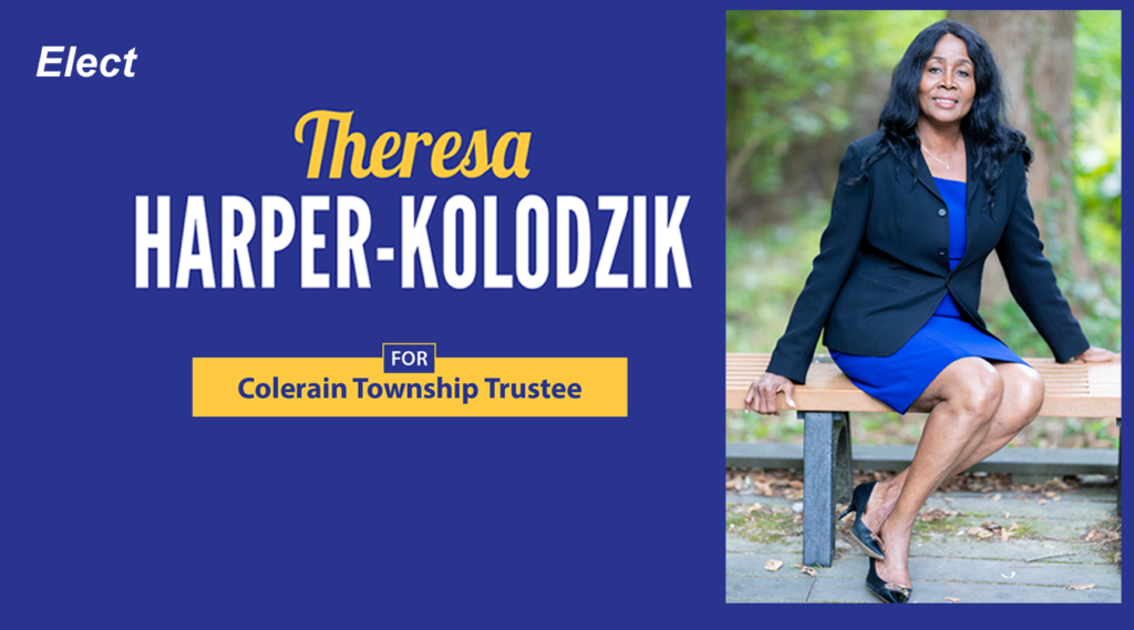 I’m Theresa Harper Kolodzik. I’m asking you to elect me as Colerain Township Trustee this November 7, 2023.